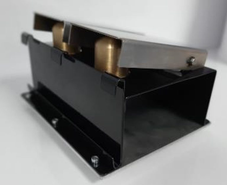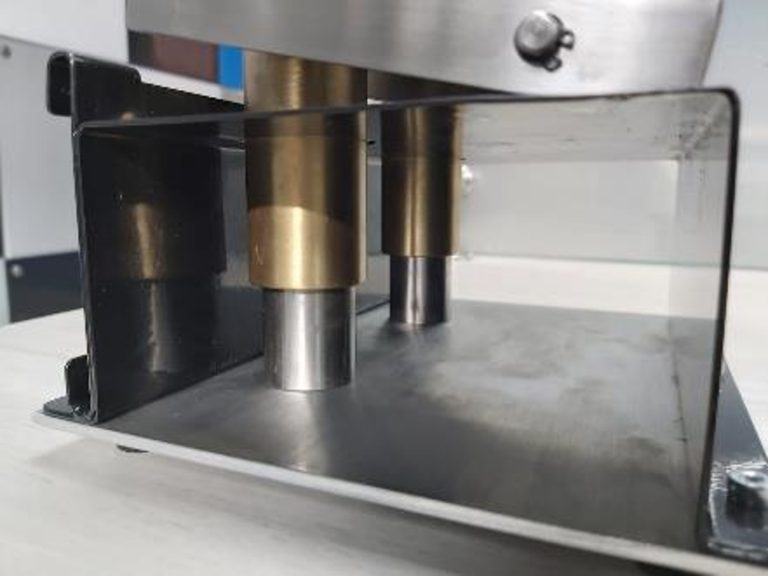 Fabricación de un dispositivo que permite probar el grado de adhesión de la cinta marca 3M versus otras marcas del mercado. Se fabrica en lamina CR cal 14 y pedales en lamina acero inoxidable. Bujes en bronce y pasadores en Acero SAE 1020. El dispositivo cuenta con un sistema de resortes que ejercen una fuerza opuesta para garantizar el correcto pegue de la cinta en el producto.