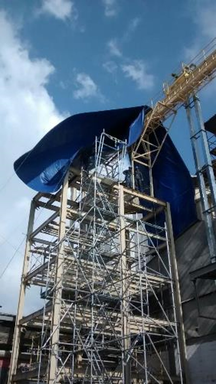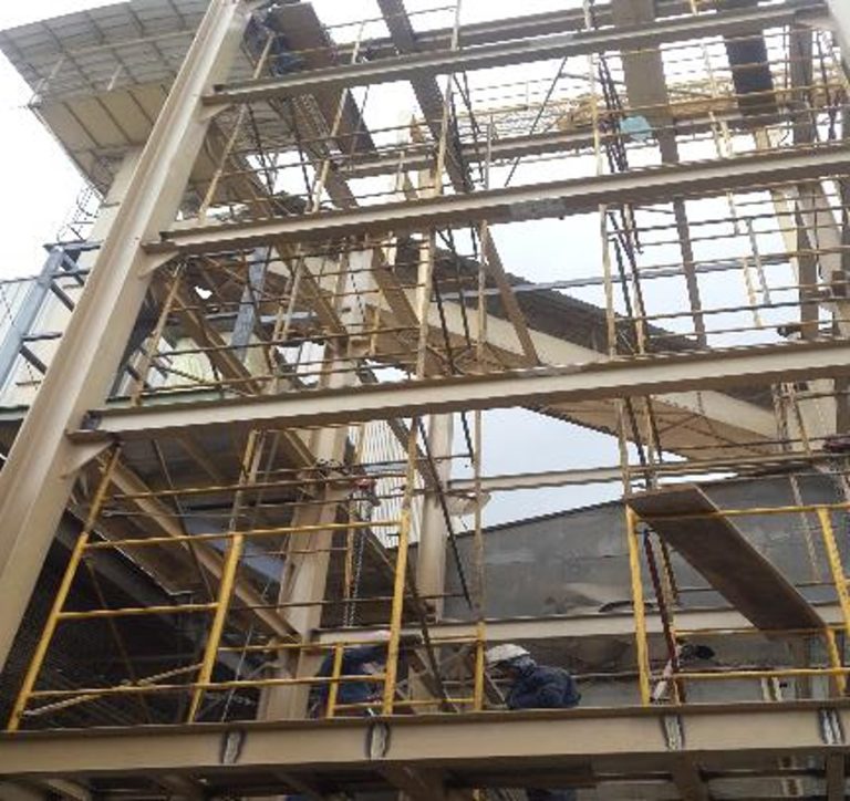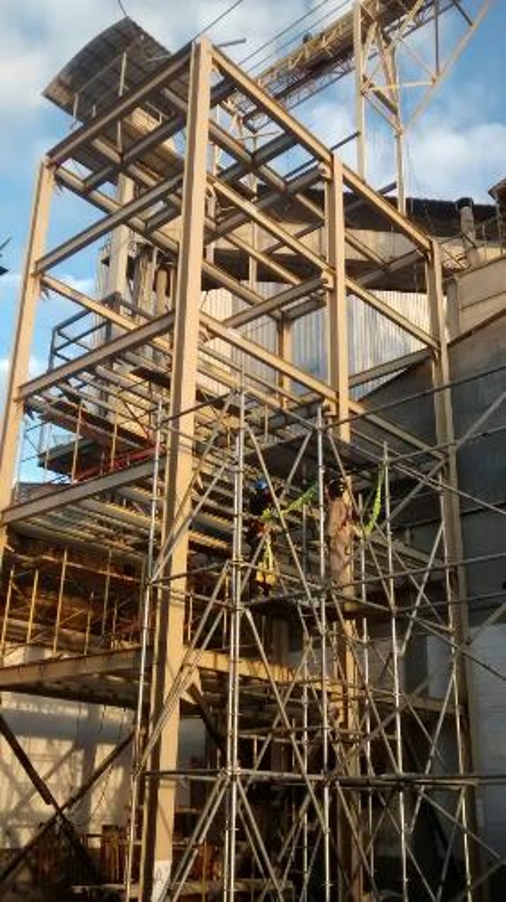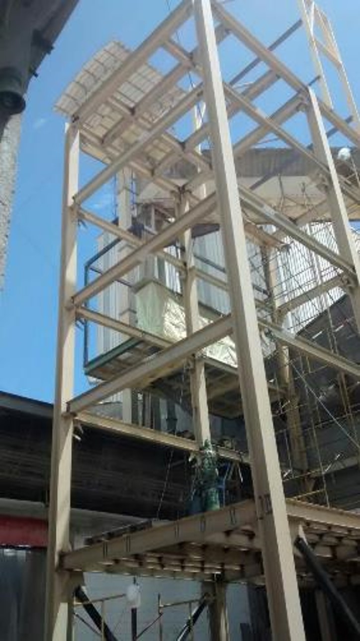 Suministro de personal calificado y quipos de izaje para instalación de 8,5 toneladas de estructura metálica para torre extruder, en planta avícola Albateq.